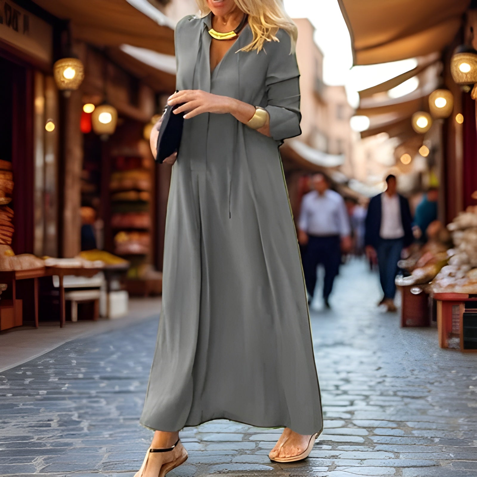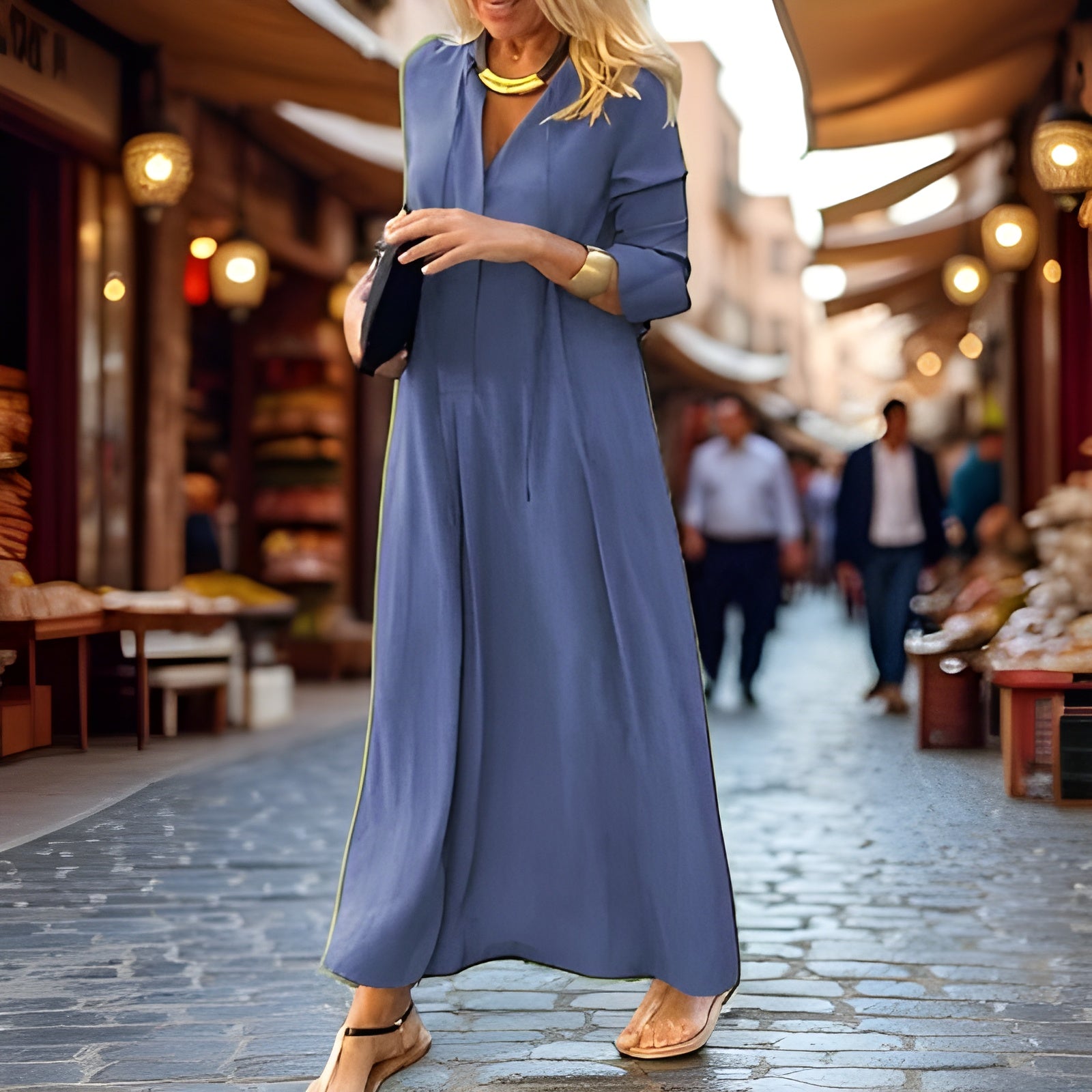 Föreställ dig en varm sommardag, en mjuk bris och du i en klänning som följer varje steg med graciös rörelse. Elsa™ är mer än en maxiklänning – det är en känsla av sommar. Oavsett om du är på väg till stranden, ett trädgårdsparty eller bara promenerar genom stan: med Elsa™ ser du alltid elegant och avslappnad ut.