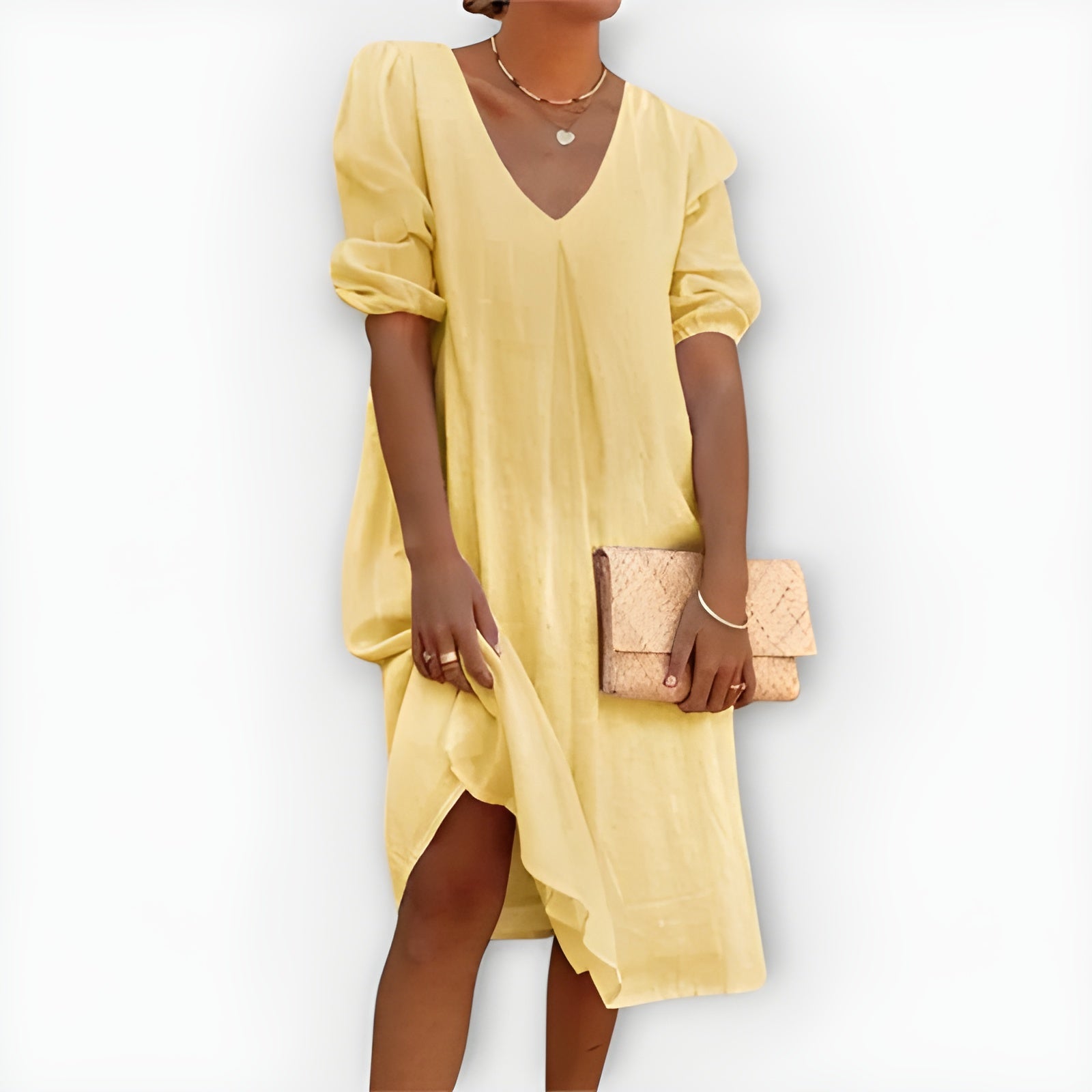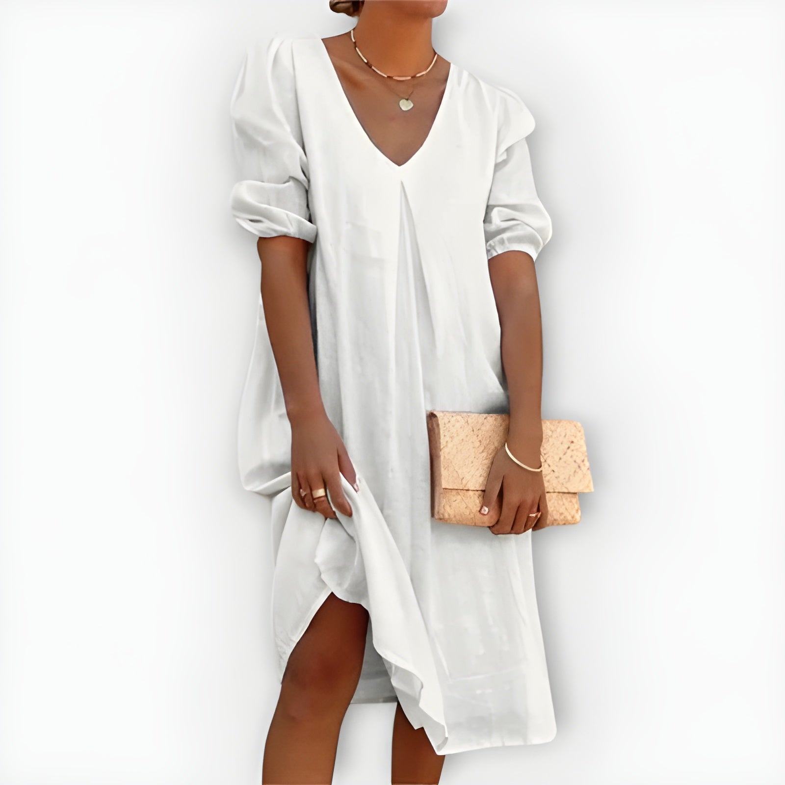 Föreställ dig en mjuk sommardag, solen värmer din hud och du strålar i en klänning som framhäver din feminina charm. Tyra™ omfamnar dig med subtila virkade detaljer och en smickrande A-linje som kombinerar elegans och komfort utan ansträngning. Perfekt för dina stadsäventyr, semesterdagar eller en stilfull trädgårdsfest.